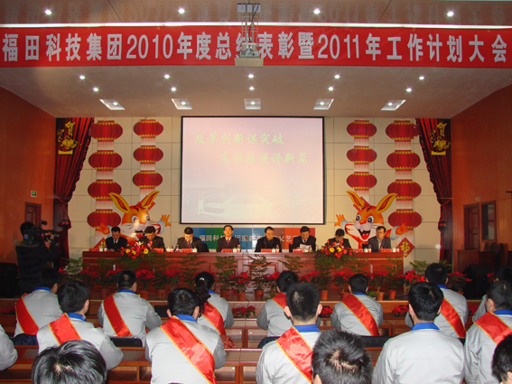 2011年2月16日上午,福田科技集团2010年度总结表彰暨2011年工作计划大会在工业园餐厅二楼礼堂隆重召开。市经信局局长杨成金,集团董事长王星云、总经理赵光辉、副总经理秦加利、田强、熊先锋、孙鲁、李玉斌及部分职工代表共400余人参加了此次大会。