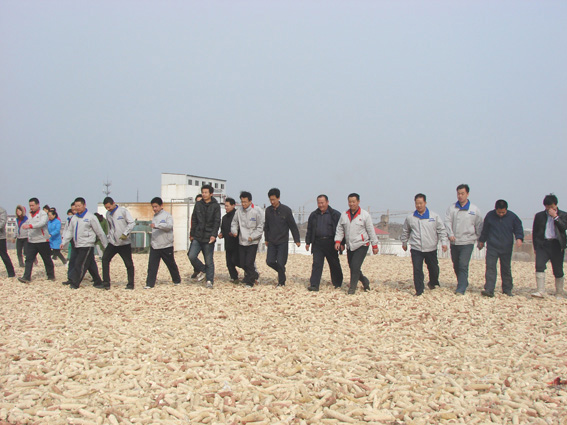 而与植树活动相对应的,在市区基地上演了一幕别具一格的劳动形式。14日下午市区基地广大干部职工在基地经理宋才勇的带领下,通过高达十余米的传送带,迎着大风攀登到了玉米芯垛顶端,十余米的高度也未能阻止很多有恐高症的同志,尤其是女同志的脚步。他们或一字横向成排,或一字纵向成队,把最初上去就会陷进半个人的玉米芯垛踩了个结实。你可别小看这活,这活儿就像和面,纯粹是“软消耗”,好多同志几个小时下来,腿都发僵不打弯了,足弓疼得厉害,眼睛也被玉米芯粉尘曝的睁不开,但他们却高兴着呢,“因为这样一来只要在折实的原料垛上铺上一层“旧玉米芯隔离层”,就可以有效应对春季雨水的潜在威胁,减少玉米芯的损失了”。宋经理如是说。