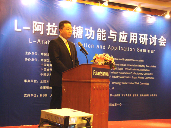 展会开幕当天下午,由中国食品添加剂和配料协会和福田科技集团共同举办的“L—阿拉伯糖功能与应用研讨会”在光韵一号厅隆重举行,中国发酵工业协会、中国食品添加剂和配料协会名誉理事长尤新,中国淀粉工业协会糖醇专业委员会理事长金树人,福田科技集团总工程师孙鲁等行业专家以“L-阿拉伯糖功能与应用”为主题展开进行了深入交流和探讨。研讨会倡导的食品添加剂和配料安全化、营养性、功能化和多样化的发展方向,代表了行业的发展趋势。研讨会上,福田科技集团将潜心研究完成的L-阿拉伯糖功能与应用成果与行业分享,显示出博大的胸襟。