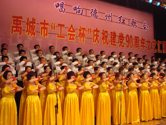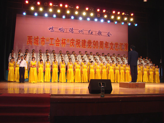 今天上午九点钟,禹城市“工会杯”迎接建党九十周年文艺汇演在市影剧院隆重举行,包括我公司在内的全市13家企事业单位参加了汇演。公司总经理赵光辉,副总经理秦加利亲自到现场观看了演出。